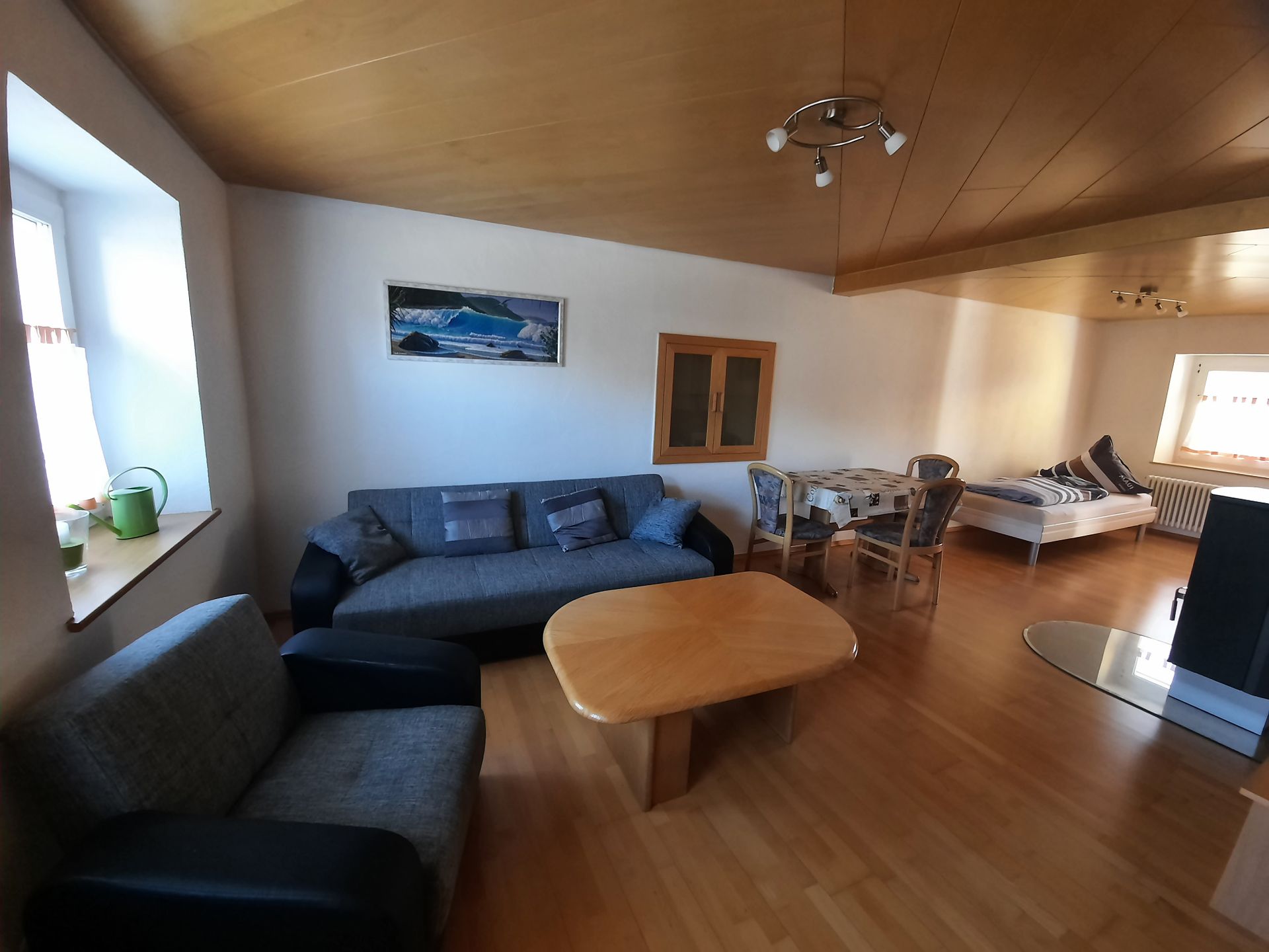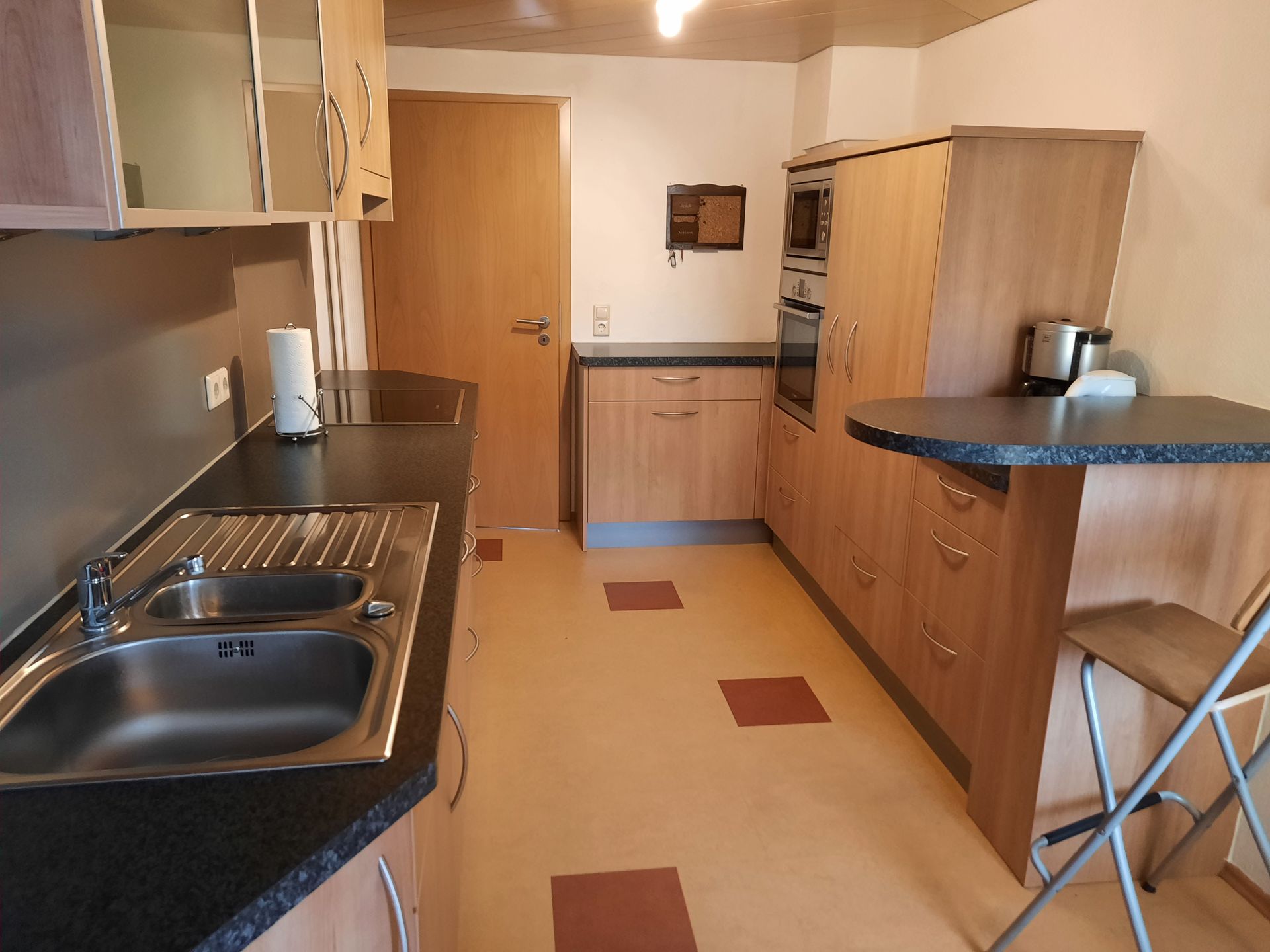 34 m² im OG für 1 bis 2 Personen, 1 Schlafzimmer mit zwei Einzelbetten, komplett ausgestattete Küche mit Essbereich und TV (Sat), Bad mit Dusche und WC.